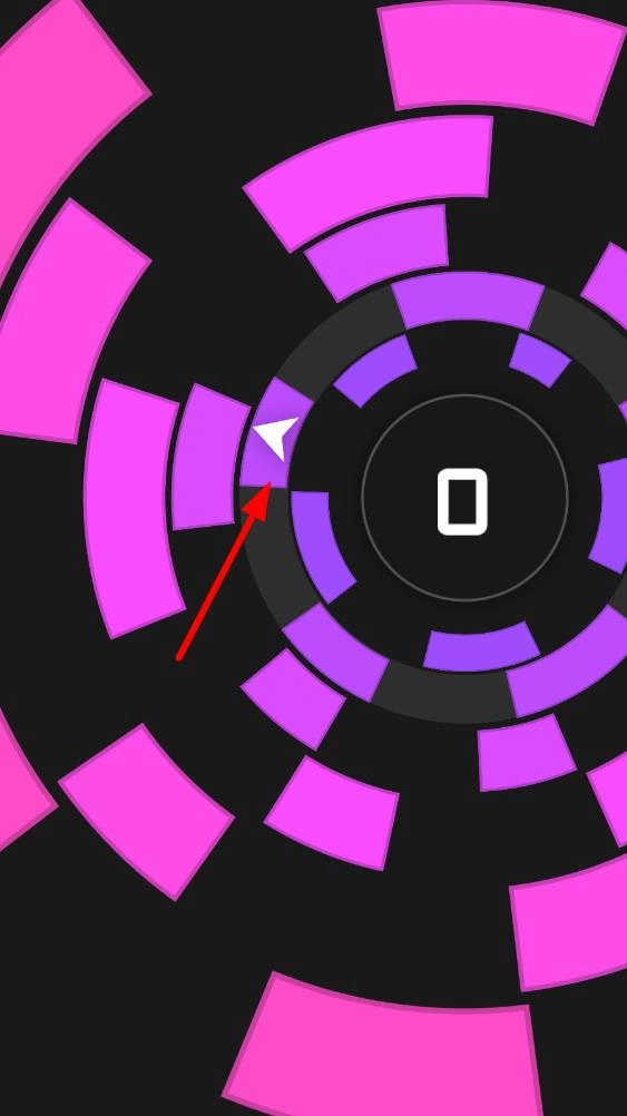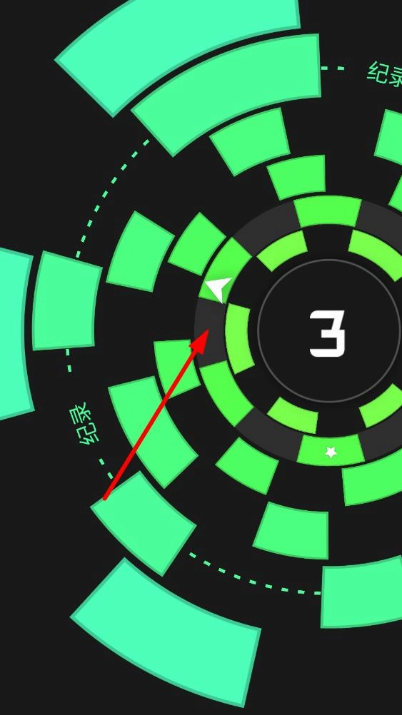 箭头操控技巧:通过滑动屏幕来控制白色箭头的移动方向,要精准判断圆环的缺口或可通行路径。当圆环转动或发生变换时,需抓住稍纵即逝的机会,迅速将箭头移出当前圆环,防止被圆环阻挡。