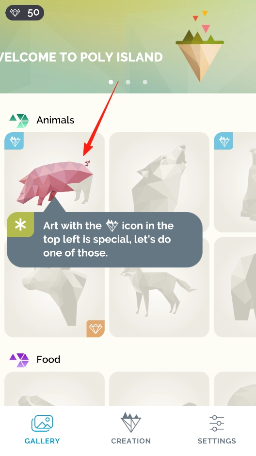 在动物类别中挑选带有粉色小猪图标的作品,这些都是经过特别推荐的艺术品。使用钻石能够解锁全新的低多边形动物模型,每个模型都支持360度旋转查看,当收藏集齐一整套时,还会有意外的惊喜奖励呢。
