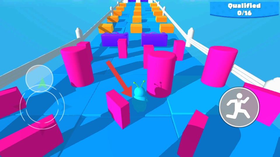 操控角色在赛道上移动时,可借助左侧的虚拟摇杆来调整方向,这是在障碍赛道中行进的基础操作,只有精准控制方向,才能避开障碍。