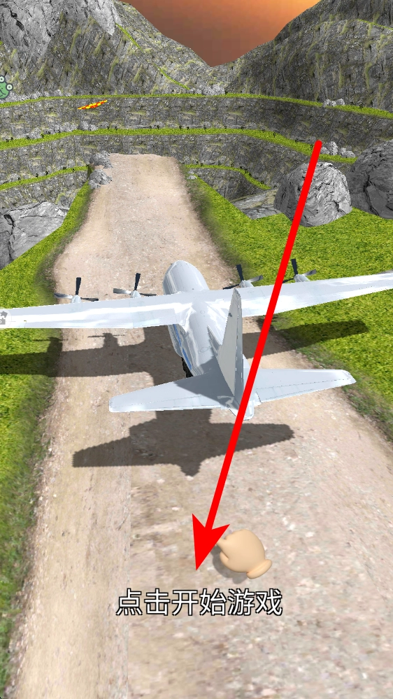 进入应用后,点击“开始游戏”按钮,就能启动飞机飞行挑战。届时,飞机会在包含山路等地形的特定场景区域内做好飞行准备,开启这场冒险之旅。