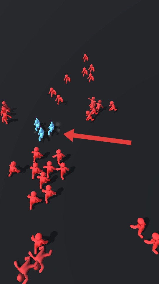 可以先滑动屏幕来指挥蓝色小人队伍移动,借此熟悉基础操控逻辑,这样能避免因为操作不熟练而让队伍分散。
