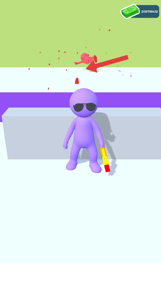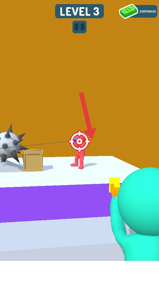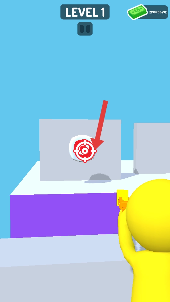 操控的小人颜色熟悉基础射击操作,长按屏幕触发枪械射击,初期优先瞄准带有靶标的物体练习,方便升级。