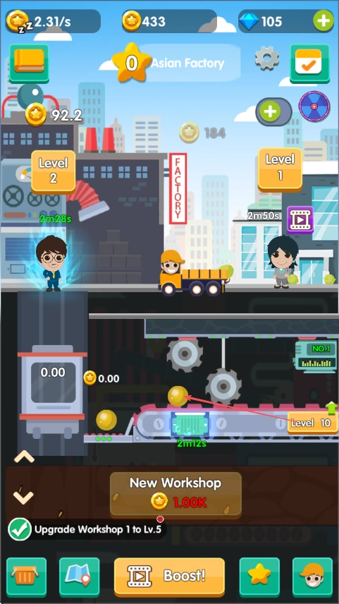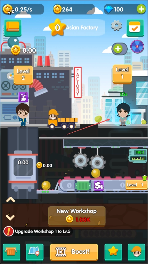 对车间与设施进行升级改造,以此提升生产效率;与此同时,要留意上方角色的状态,在合适的时机为其安排相应工作。