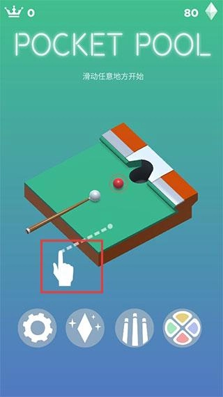 进入游戏后,我们用手指拖动球杆,先对准红球,接着向后拉动,虚线的长度越长,击球的力度就越大。