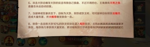8、战胜大妖后,10%的妖灵奖励将注入炼妖奖池,待满足相应条件即可开展炼妖操作,赢取丰厚奖励,具体详情可查阅帮助页面。