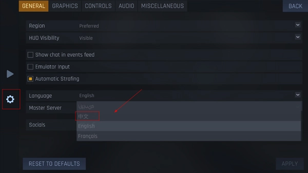 3、最后点击【LY】应用,返回游戏就可以看到语言设置成中文了。