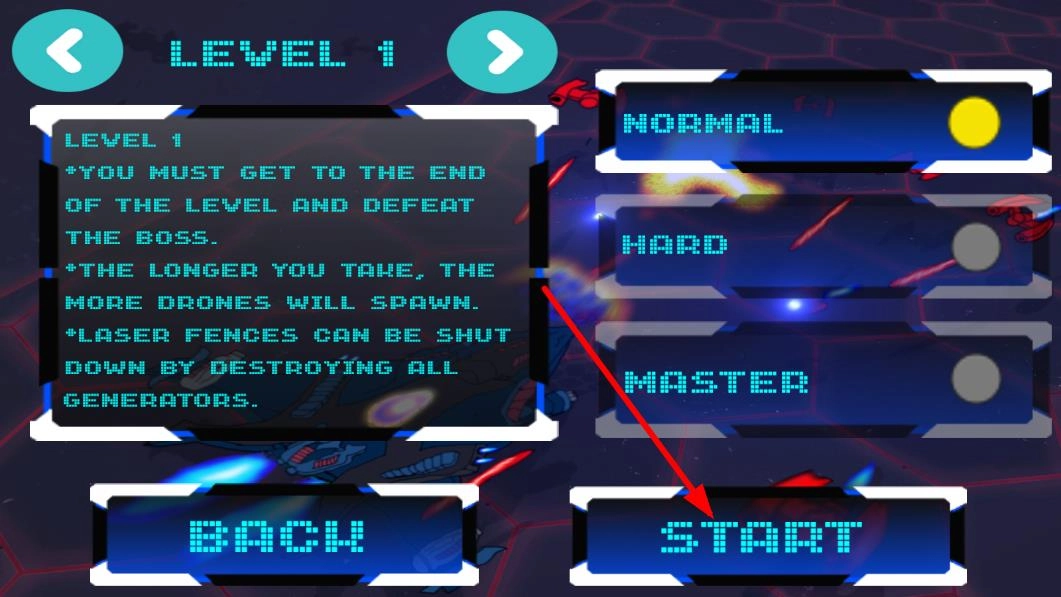 进入界面后,我们先了解规则,接着在完成抵达终点、击败Boss等目标后,点击START按钮,挑选合适的难度,开启第一关的挑战。