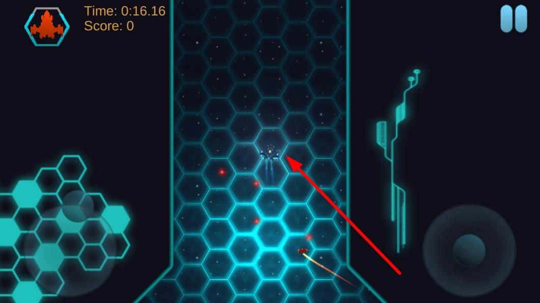 驾驶飞船在六边形网格构成的空间中穿梭,避开敌人的攻击,破坏发电设施以关闭激光屏障,以最快速度到达终点。