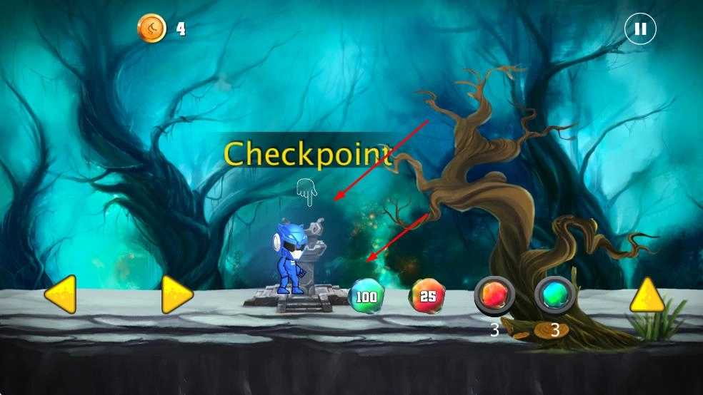 注意观察上方显示的金币数量等相关信息,尽量收集更多的金币以及特殊物品,游戏角色会碰到Checkpoint,通过该检查点或许能够保存游戏进度或者获取奖励。