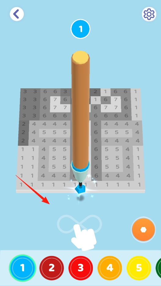 按照指引滑动操作,挑选颜色,把数字对应的区域填充好,一步步完成像素画,感受色彩填充的乐趣。