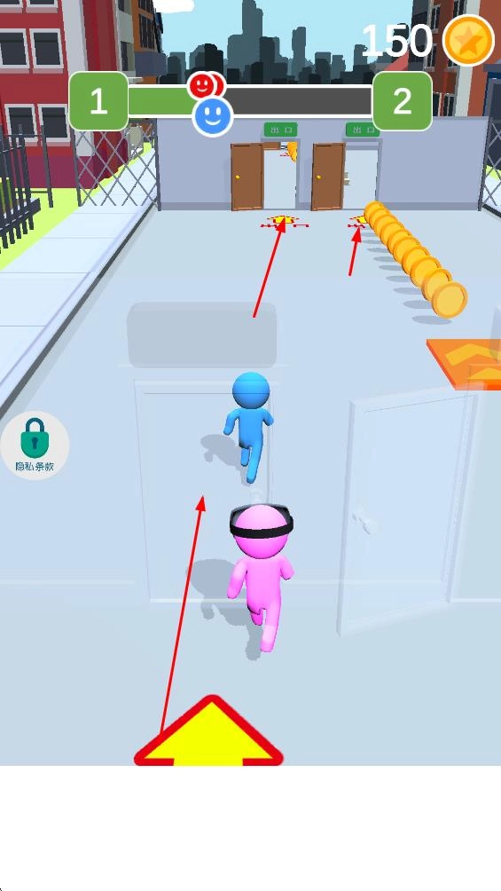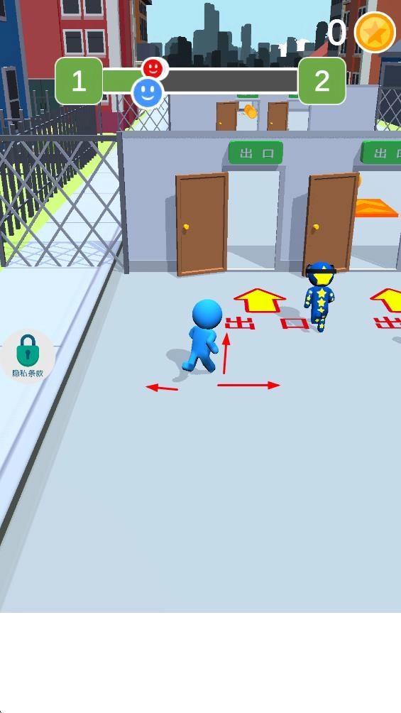 要顺利逃生,关键操作是操控蓝色小人在场景里奔跑并躲避障碍物。