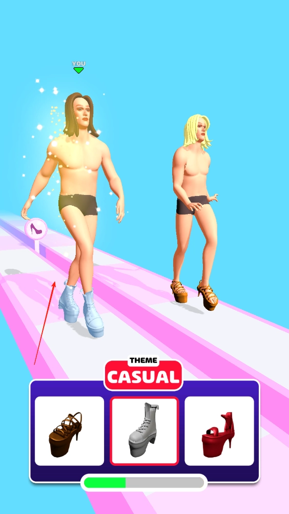障碍躲避与收集玩法:通过滑动屏幕操控角色左右移动,避开赛道上的挡板、陷阱等各类障碍,同时精准触碰女装道具以完成收集。过程中需兼顾奔跑的连贯性,还要尽可能获取丰富多样的服饰。