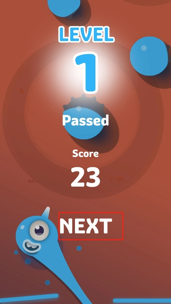 顺利通关后,蛇的身体会呈现出渐变的光效,界面上会显示本次收集到的圆点总数量,点击NEXT按钮就能进入下一个关卡。