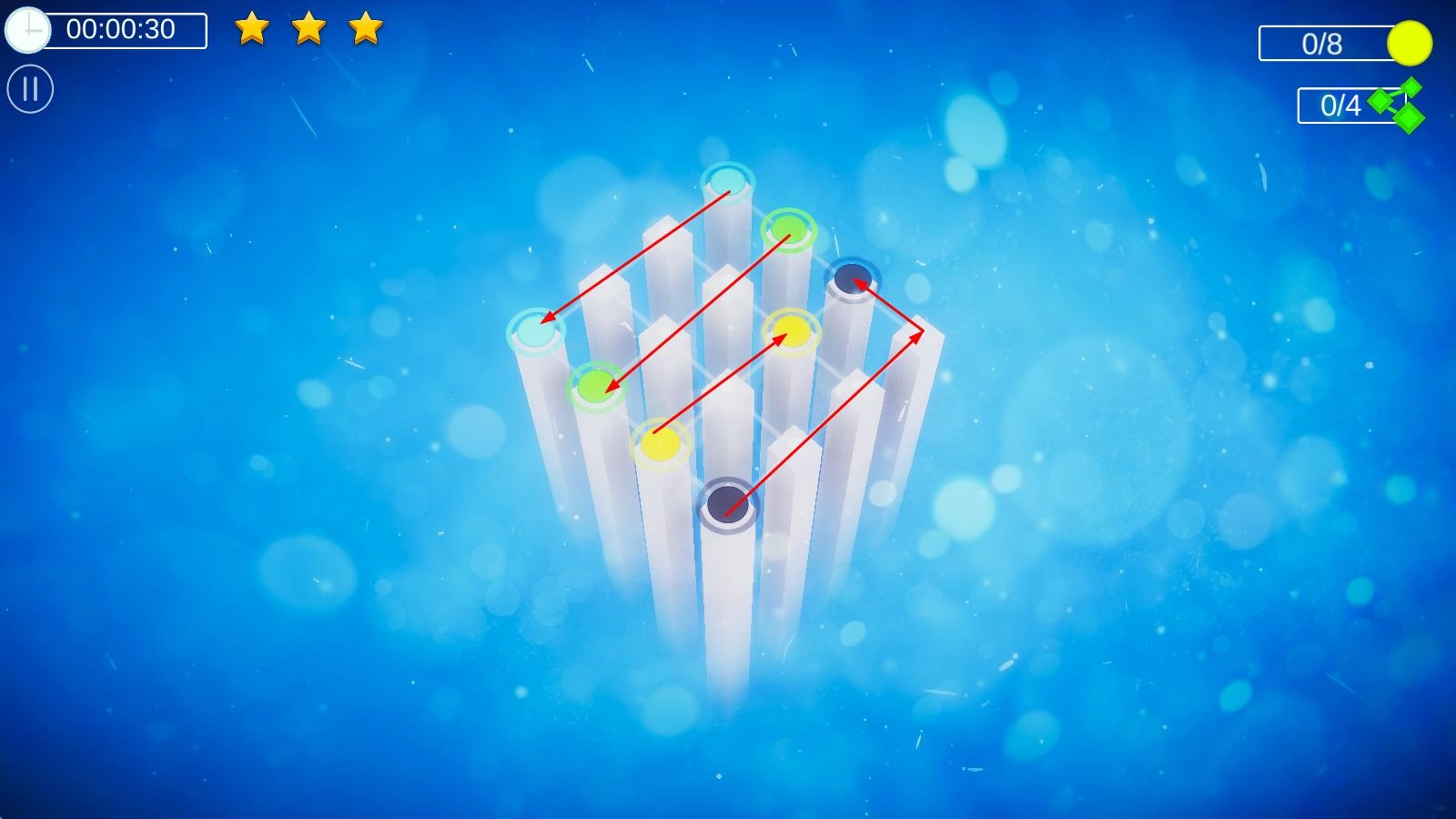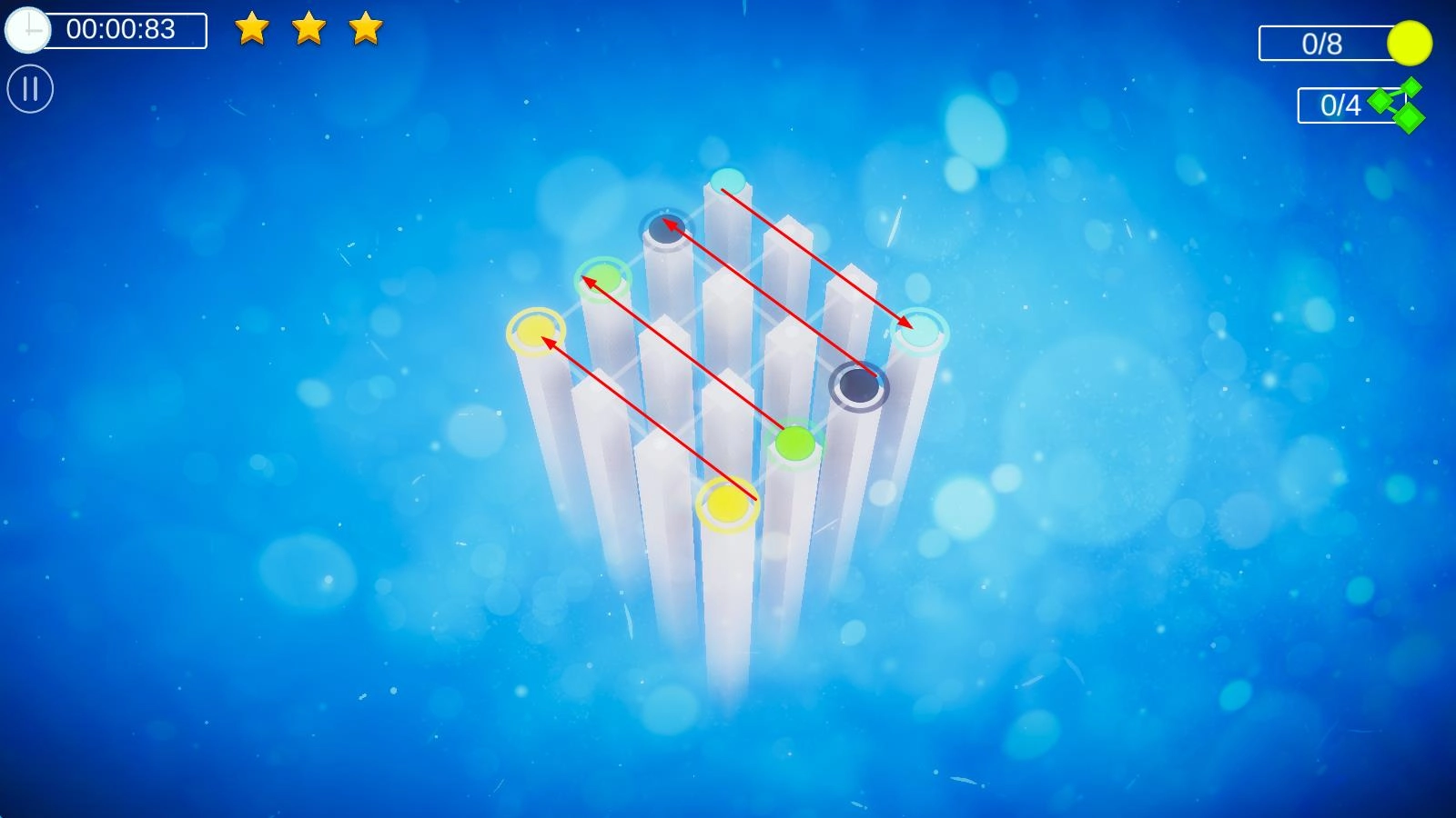 颜色连线游戏:玩家需用手指在格子间滑动,把相同颜色的格子通过线条连接起来。关键规则是所有线条不能交叉,这十分考验玩家的空间规划能力。
