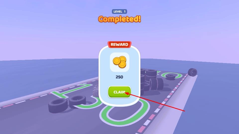 通关后点击绿色的CLAIM按钮,就能领取250金币的奖励,之后需要解锁后续关卡来继续挑战。