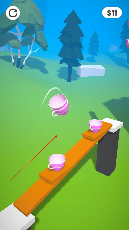 点击屏幕就能操控纸杯旋转跳跃,让纸杯精准落在另一个纸杯上,只要成功将纸杯堆叠起来就算完成任务。