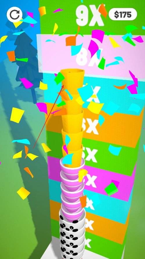 要想顺利通关,得在抵达关卡终点前把所有能收集到的纸杯都成功叠起来,达到规定的目标数量就行;要是叠起来的纸杯数量超过了目标,还能拿到额外奖励,解锁新的纸杯样式呢。