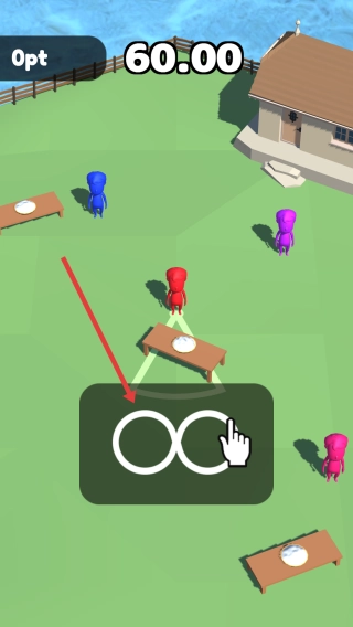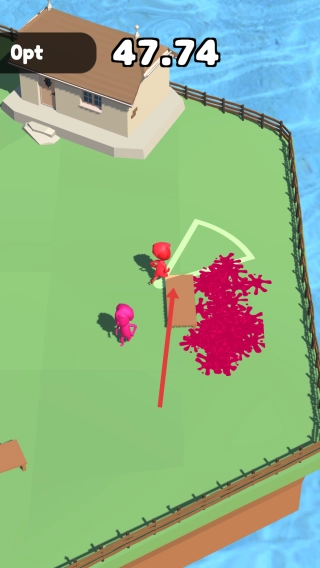 在游戏场景里,操控红色小人去接近粉色小人,借助游戏自身的机制把它打出安全区域,以此来取得游戏上的优势。