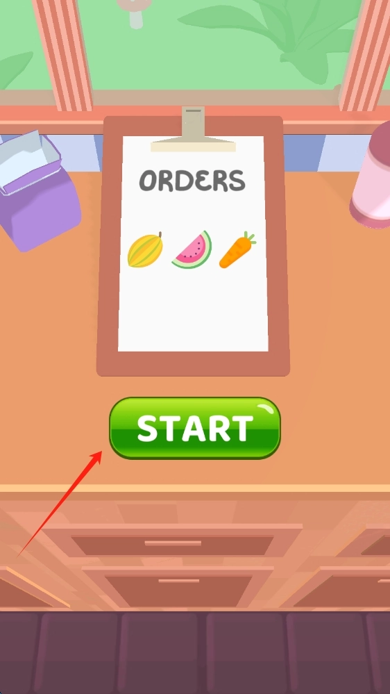 在游戏的启动界面,认真查看订单ORDERS里的食材要求,点击START按钮,开始食材处理的任务。