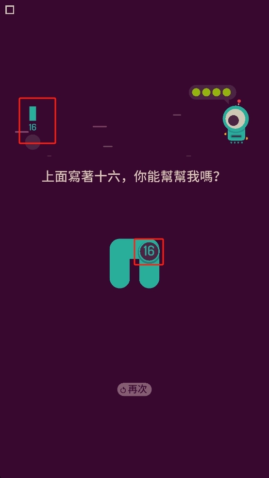 发现左侧的16标识后,把它和下方带有16的青色图形相对应,通过点击与拖动的操作,使它们的位置达成匹配,以此完成这一步的解谜。