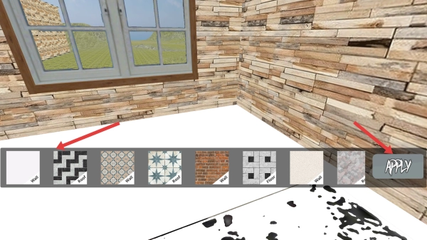 在游戏里,你可以挑选各式各样的装饰图案,点击LY按钮就能把选中的图案应用起来,从而对场景进行装饰与布置。