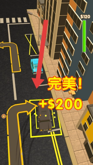 靠近车位时放慢车速,通过细致操作让车辆准确对准黄色框线区域,顺利完成完美停车就能获得丰厚的金币奖励。