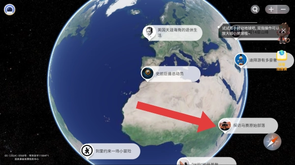 地球里出现了不少地区各异的标识,玩家能按照自己的喜好随意点击,再依照指引来操作。