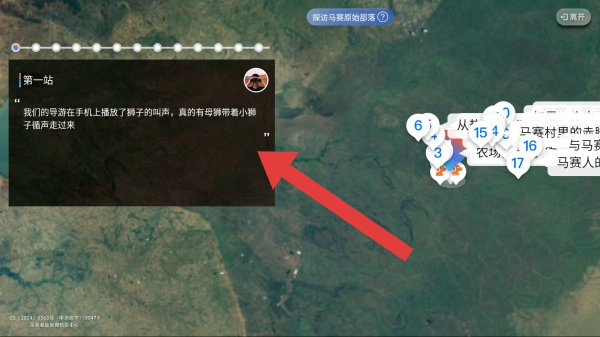 第一站我们先去探索马赛原始部落,期间导游用手机播放狮子的叫声,展示了这种借助虚拟元素的互动玩法。