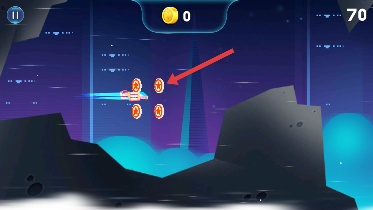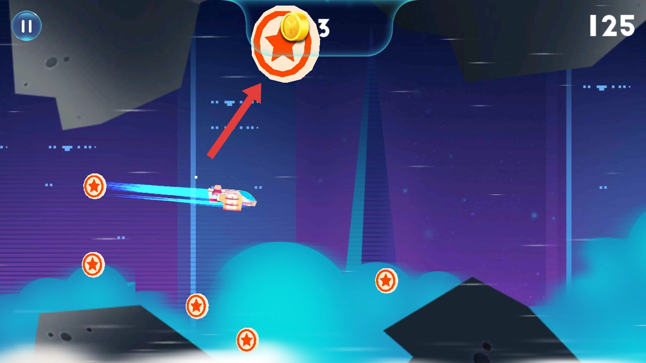 需要操控飞船移动,收集场景里的红色星形道具,这是提高最终结算分数的基础操作。