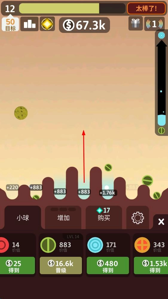 当积分与奖金满足条件时,你可以选择晋级,或是购买更多小球;这些小球能不断增值,帮你解锁新的游戏等级,开启全新的情节内容,从而向难度更高的挑战发起冲击。