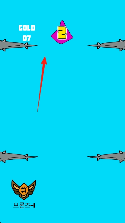 在蓝色场景中,找准尖刺之间的空隙,操控带有数字标识的紫色角色顺利通过,不断收集金币,以此推进关卡进度。