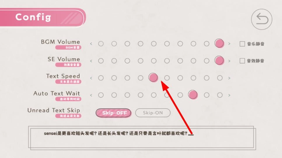 你可以通过调整Text Speed的文本显示速度滑块,来控制游戏里文本的显示节奏,从而更好地适应自己的阅读习惯。