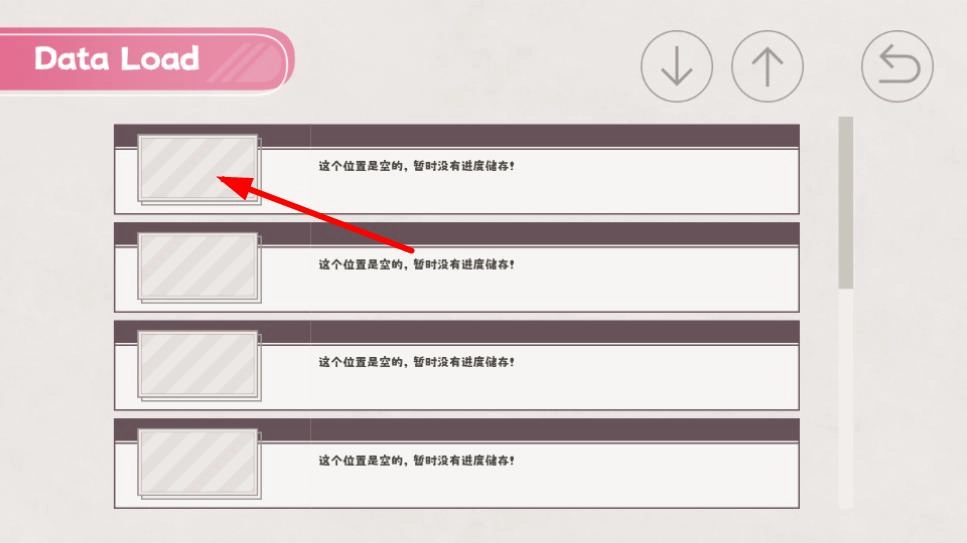 在界面中点击箭头所指的空位,就能加载对应的游戏进度,从而继续之前的游戏进程。