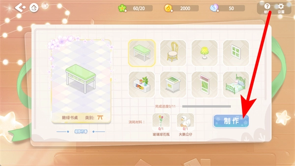 接下来就可以制作家具了,先挑选你想做的家具款式,把需要用到的材料都准备齐全,然后点击制作按钮。等家具制作完成后,就能用它来装点你的家园啦。