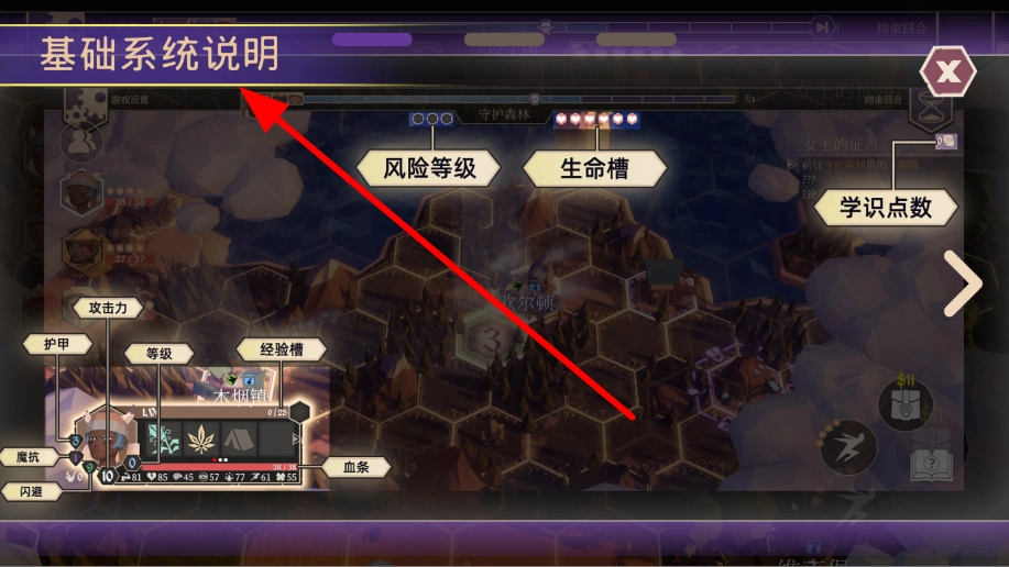 提供基础系统说明,其中包含风险等级、生命槽、学识点数等各类关键信息,仔细查看这些说明,能帮助玩家熟悉机制。