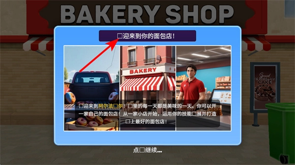 点击面包店介绍界面的继续按钮,这一界面操作是进入经营的核心步骤,完成操作后就能正式开启面包店的经营生涯,售卖面包与甜点。
