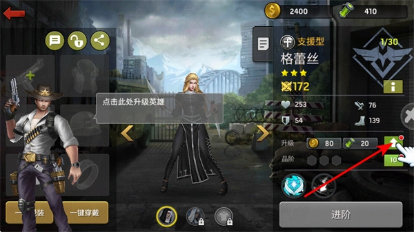 点击升级按钮能够提升英雄等级,这是增强队伍战力的关键操作,升级时要留意资源的消耗以及等级提升后的属性变化。