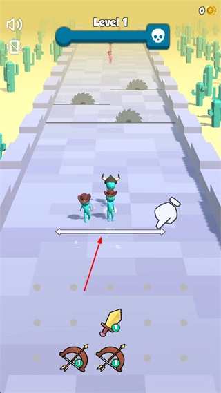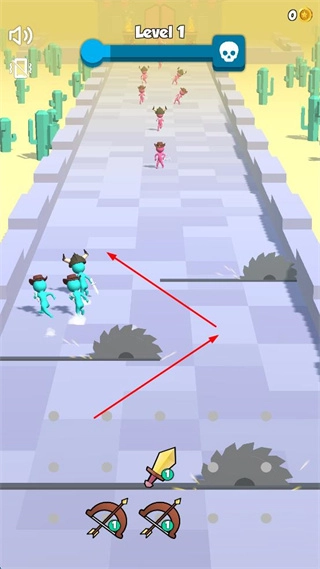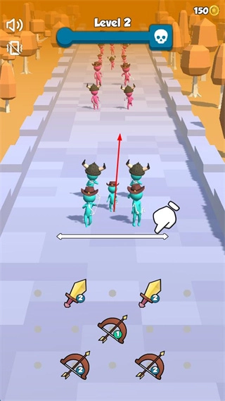 进入第二关后,根据提示上下滑动屏幕,调整火柴人团队的纵向位置,继续进行跑酷战斗。