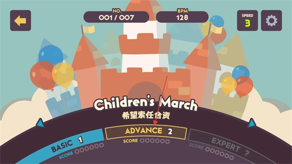 进入游戏后,选择ADVANCE2难度,准备开始演奏。