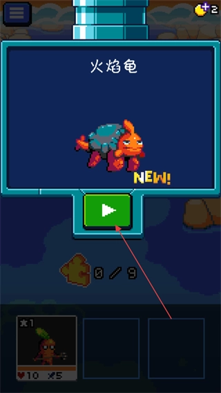 成功捕获火焰龟这类新生物后,点击绿色按钮将其添加至队伍,便可继续展开探索。