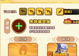 编队界面可以装备灵宠,演武场PVP、PVE、家族战的编队是分开的,每个都需要单独设置灵宠上阵