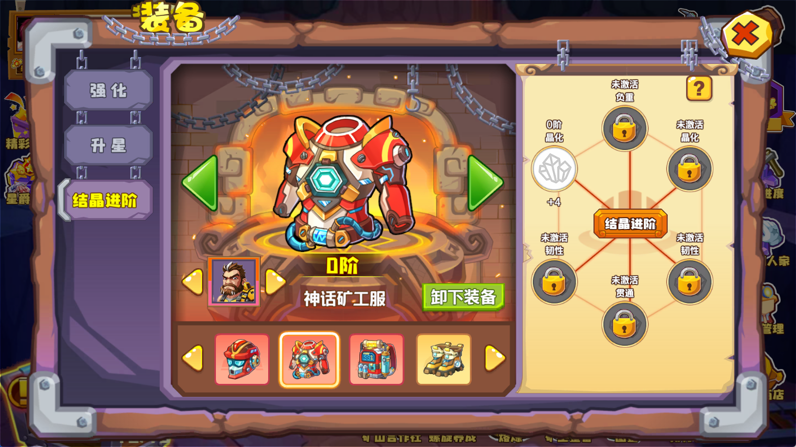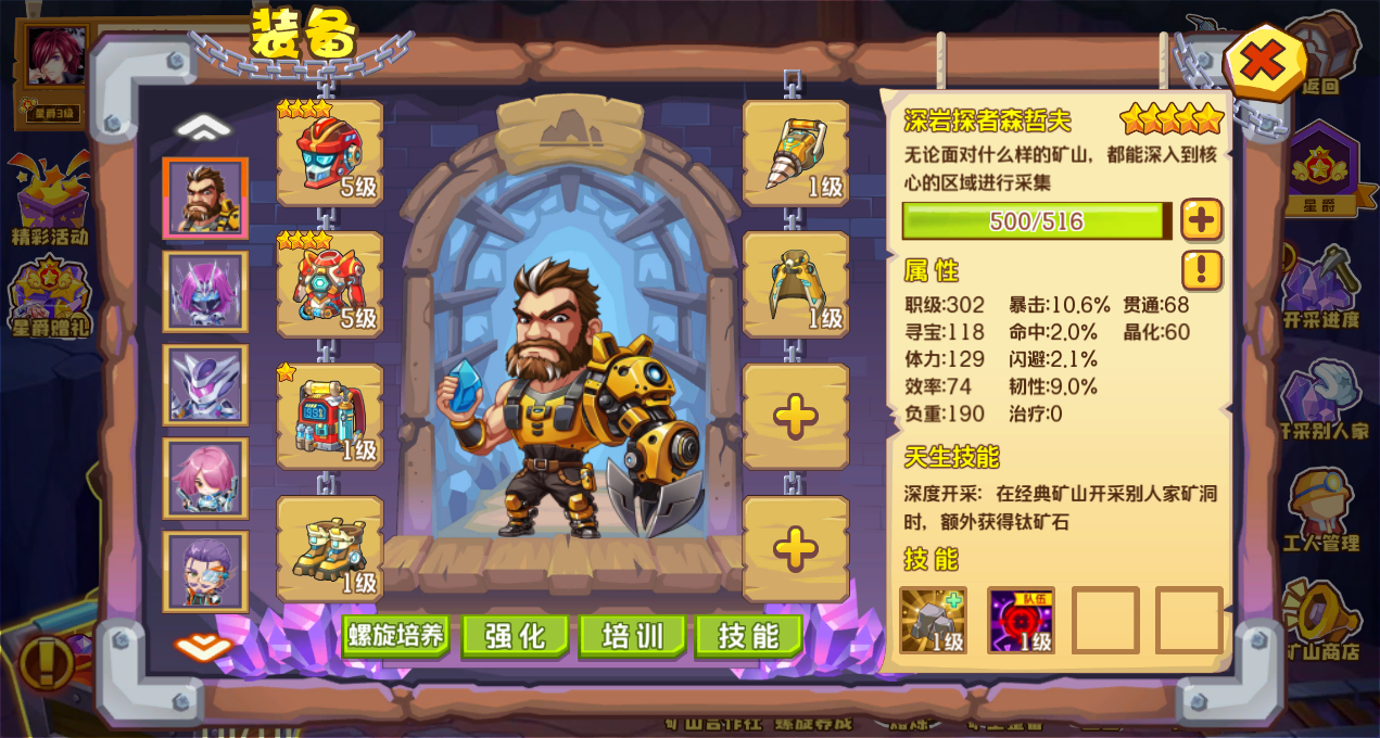 3、选择矿工,穿戴好传说矿工装备;