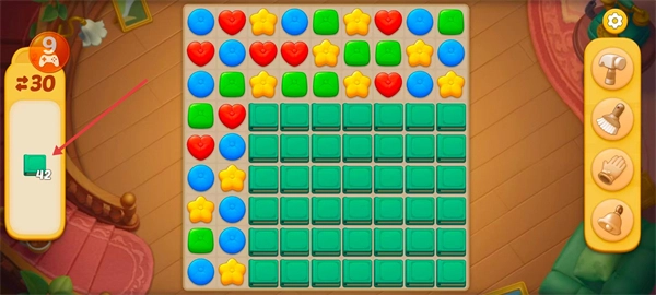观察游戏界面的任务目标,本关需要收集42个绿色方块。