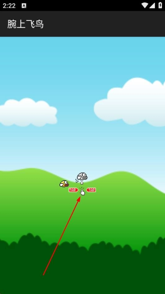 1、打开腕上飞鸟游戏,点击【TAP】区域,操控小鸟跳跃起飞。