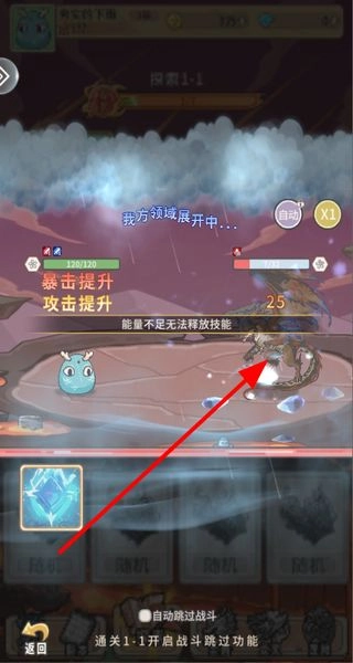 在战斗时运用技能对怪物发起攻击,开启领域来增强自身战力,战胜敌人后,就能推动关卡朝着通关的方向前进。