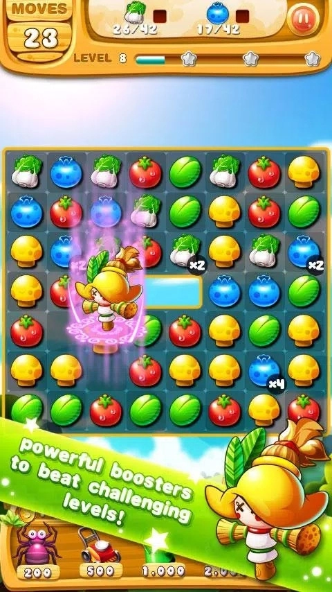 3. 收集各类可爱的作物,并且在你用完它们之前,要先达到目标等级!