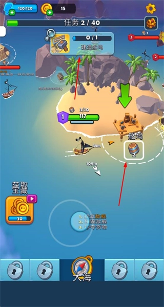 探索岛屿周边区域,前往指定的标记地点收集资源,以此为战舰的后续发展筑牢根基。