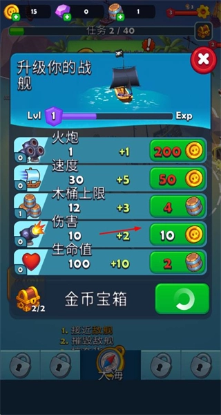 升级战舰的火炮、速度等属性,以此增强战斗能力,从而应对更严峻的挑战。