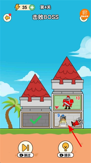 击败普通敌人能积累战力,等战力攒够了再去挑战BOSS,要瞄准BOSS所在的格子发动强力攻击,保证把它击败。