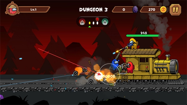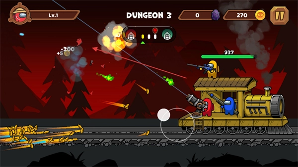 在火车上操控多种角色专属武器,瞄准敌人进行射击,消灭敌人后可获取金币与经验。